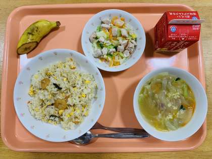 9月7日(水) 本日の学校風景(2) 公開日 2022/09/07 更新日 2022/09/07 学校生活 〈今日の献立〉 ・エッグピラフ ・チキンサラダ ・ABCスープ ・バナナ ・牛乳 〈給食クイズ〉 ピラフとチャーハンの違いは何でしょう? 1.入る具材 2.調理法 3.味付け 答えは「おりたたみ記事・ここをクリック」に掲載しました。 おりたたみ記事・ここをクリック 閉じる 正解は、2の「調理法」です。 チャーハンは、炊いた米を炒めて作るのに対して、ピラフは生の米を炒めてからスープを入れて炊き上げます。 チャーハンとピラフの語源は同じでインド料理の「プラーカ」という料理からと言わらています。 プラーカは肉の煮汁でご飯を炊き、それを炒めたものでインドから西に伝わったものはフランスでピラフ、東に伝わった物はチャーハンになったそうです。 栄養士 大西