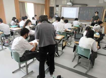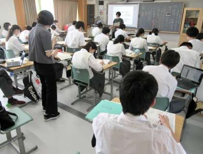 現在、理科の授業では、院生が実習生(研修生)として、TT(ティームティーチング)を行っていますが、国語の授業でもTTのように学習支援に入っていいただいています。
