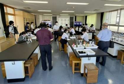 理科の授業でのICT機器(学習用端末「きたコン」)の活用をテーマに授業が行われました。