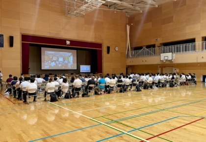 3年ぶりに小中合同での研究会ということで、写真:下のとおり、区内の小中学校の先生方が大勢集まりました。