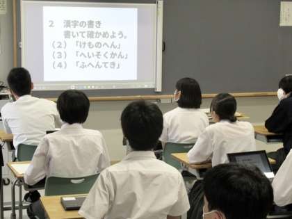 こちらの教室でも、スクリーンにテスト問題の一部が映し出されています。
