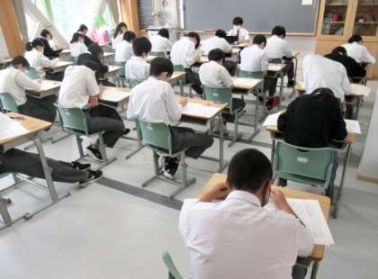 1時間目から国語 ・ 数学 ・ 英語 ・ 社会、給食後、理科のテストを行います。