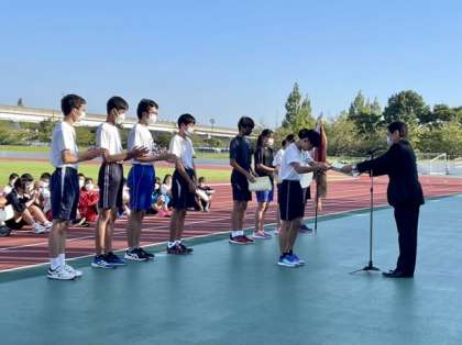 飛鳥中は、エントリーした選手の多くが、8位入賞を果たし、男女総合得点で見事「 第4位 」に輝きました。写真は、「男女総合 第4位」の賞状を授与された様子です。