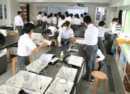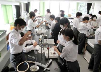 理科室では、すでに実験の進め方について、担当の先生からの説明が終わり、それぞれ分担された道具の準備をしていました。