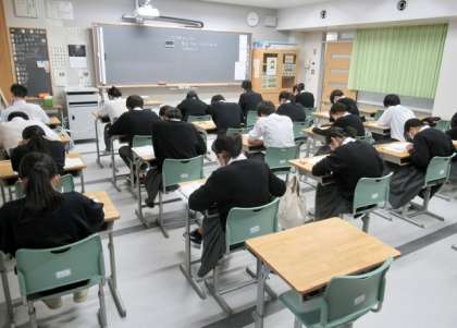 本日は、73名の生徒が、4つの教室に分かれての実施となりました。
