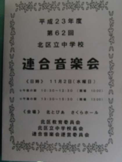 11月2日(水) 平成23年度 北区立中学校連合音楽会開かれる!