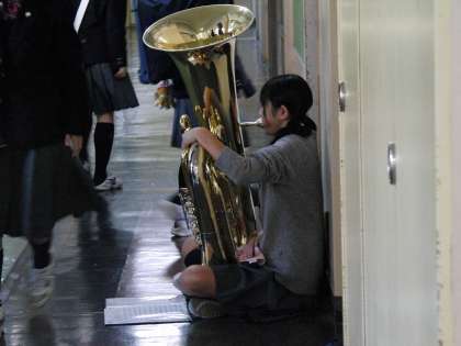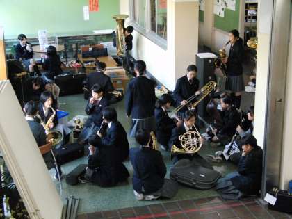 ※応援にかけつけましたが、撮影禁止ですので、朝の飛鳥中の廊下の練習風景を