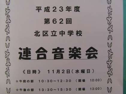 11月2日(水) 平成23年度 北区立中学校連合音楽会開かれる!