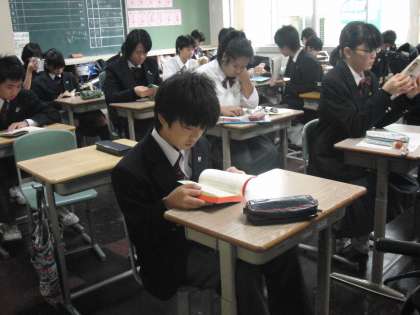 1年生は朝の読書を真剣に行っています。