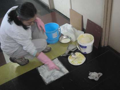 5月22日(火) 校舎の床タイル張り…用務主事さんがいつもこつこつ丁寧に!