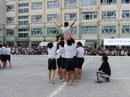 ※女子生徒全員の飛鳥ソーラン、そして、男子生徒全員の組体操には、感動でまたまた涙でした。