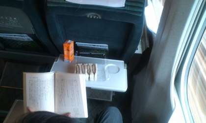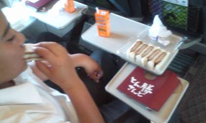 昼食です。皆さん急に静かになりました。しばし読書の生徒も。皆さん元気です。修学旅行団体列車ですが東京〜新大阪2時30分ほどの超スピードです。