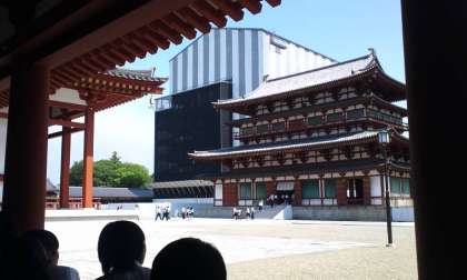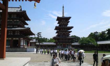 薬師寺に参りました。残念ながら東塔は改修中です。薬師寺の説法を聞いてます。
