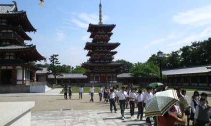 6月7日(木) 飛鳥中学校 修学旅行一日目 公開日 2012/06/07 更新日 2012/06/07 学校生活 6月7日(木) 飛鳥中学校 修学旅行一日目 薬師寺はやはり、国宝薬師三尊像は素晴らしいものです。薬師如来、日光菩薩、月光菩薩はやはり世界に誇る美しさです。また修復中ですが、フェノロの凍れる音楽といわしめた東塔、白鳳時代の国宝。新しい西塔から当時がしのばれます。
