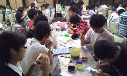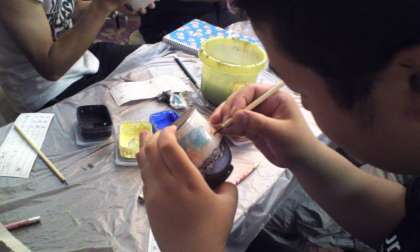 体験多色マグカップの絵付け。最新の染料で多彩なカラーになるようです。
