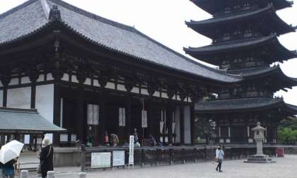 いよいよ出発です。興福寺五重の塔を通りすぎ、近鉄奈良駅に向かいます。
