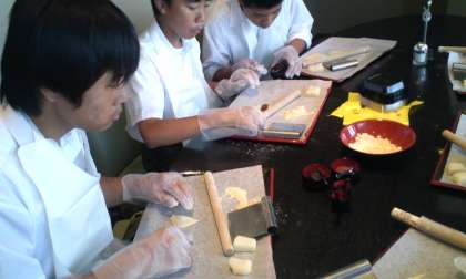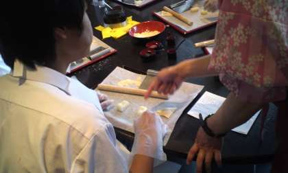 西京極の八ツ橋作り体験の班です。