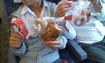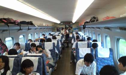 6月9日(土) 飛鳥中学校 修学旅行3日目 帰りの新幹線、おやつタイムです。
