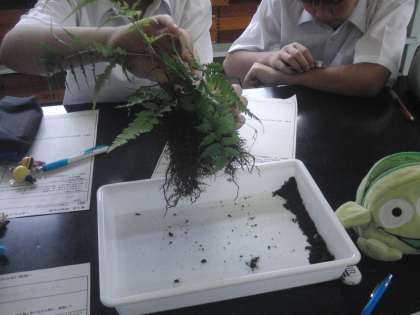 6月11日(月) 理科の研究授業(1年生 シダ植物の観察)