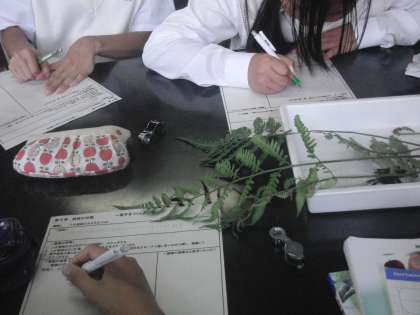 胞子のうを見つけたり、シダ植物の特徴を観察し、まとめていました。