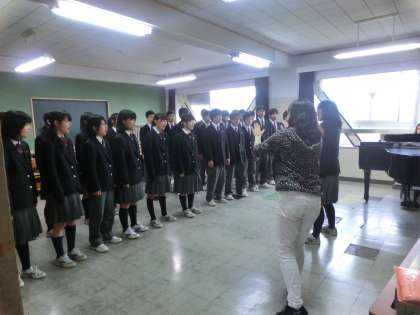 ※音楽科の原先生は、どこからともなく現れて、各学級やパートに合った指導をしてくださいます。声楽が専門の音楽の先生です!