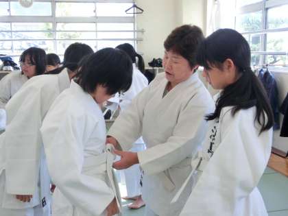 11月5日(火)第1学年女子 柔道の授業始まる! 公開日 2013/11/05 更新日 2013/11/05 学習・学力向上 11月5日(火)第1学年女子 柔道の授業始まる! 今年度も、北区柔道会会長の関様、理事長の菅原様にご指導をいただきます。1年女子は初めてのため、柔道着の着方や礼の仕方から教わります。真剣に取り組んでいました。(保健体育科:指導は荒記主幹教諭)