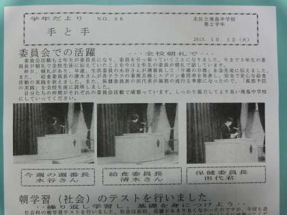11月13日(水)各学年だよりを読んでください!HPで掲載できない表彰の個人名や写真など豊富です!