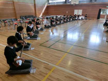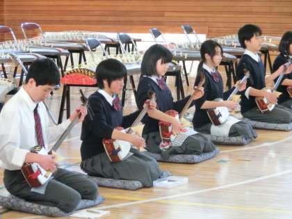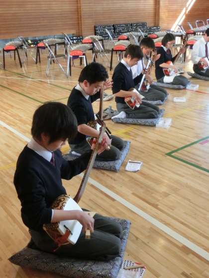 3月24日(月)保護者会にて、1学年三味線と筝(そう)の演奏披露