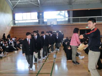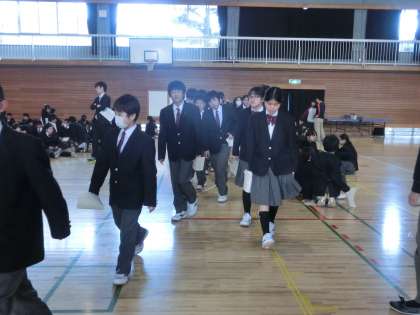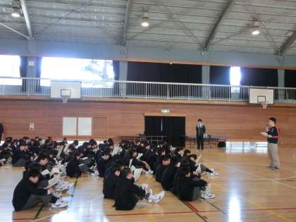 ※生活指導部の部活動担当の烏谷先生から、入部の方法や仮入部の仕方など連絡がありました。1年生はよく考えてぜひチャレンジしましょう。部活動への参加は強制ではありませんが、飛鳥中生徒の部活動平均参加率は93%です。在籍100人中93人は所属しているということです。