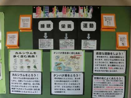 身長を伸ばすこと、尿検査の意味、健康の自己管理などをよく理解したり、保健室だよりや掲示やクイズにもチャレンジしてみたりしてください。