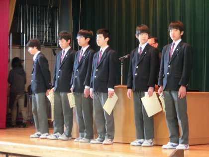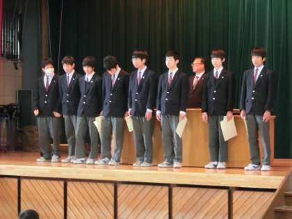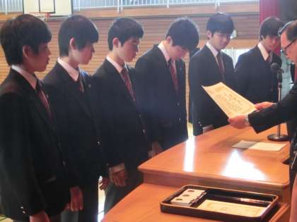 4月28日(月)朝礼にて表彰しました。強いですね!(指導は荒記先生)