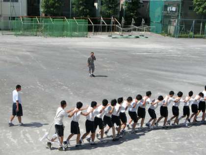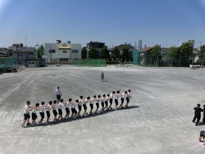 5月9日(金) 運動会練習頑張っています!五月晴れの校庭にスプリンクラー!