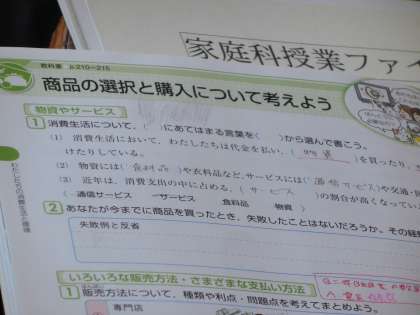 ※家庭科の授業。問題解決型授業で、クレジットカードの使い方などを学んでいます。