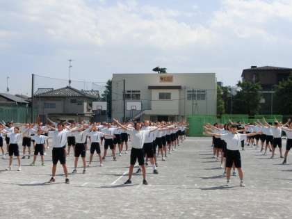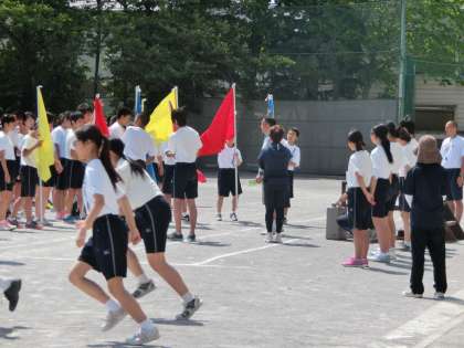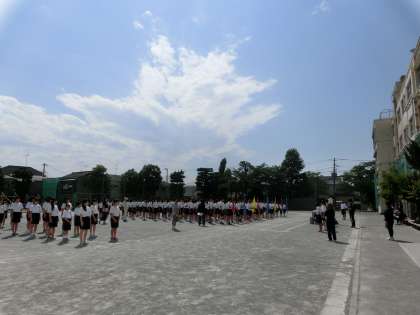5月16日(金)運動会練習 吹奏楽を先頭に全体練習です!五月晴れです!