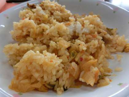 ※給食献立:キムチチャーハン、ツナの春巻き、わかめスープ、牛乳