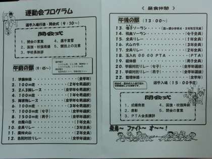 午前の部9時45分〜(短距離走、学年種目、全学年選抜リレーなどが行われます。)