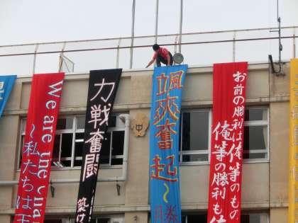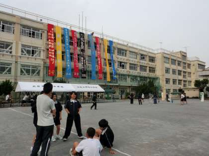 5月24日(土)は飛鳥中学校の運動会です!校庭や垂れ幕等の準備も完了!★★開催等の連絡は朝7時、ホームページと配信メールで行います!