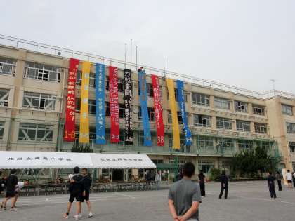 5月24日(土)は飛鳥中学校の運動会です!校庭や垂れ幕等の準備も完了!★★開催等の連絡は朝7時、ホームページと配信メールで行います!気合の入った練習が続いていますので、どうぞ奮ってご参集ください。 (東京都北区立飛鳥中学校長 鈴木明雄)