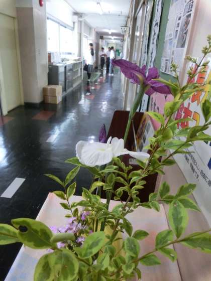 明日土曜日は運動会が予定されている学校もまだ多いようです。生徒たちは元気に学習に集中しています。試運転のエアコンの冷却魔法は凄いものですね。生徒が生けてくれる生け花も6月の花ですね。しばし心和ませてくれます。