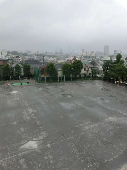 ※雨で、池袋サンシャインが霞んでいます。本校は高台にあり、雨が近付くと、西のサンシャインが曇り、ザーと降り出します。