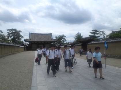 7月8日(火)奈良は、法隆寺に着きました。雨はなく、猛暑です。