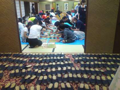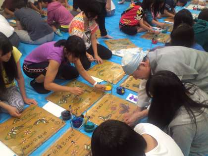 体験活動、友禅型染めの開始です。飛鳥中学校の生徒は伝統的にこのての芸術に力を発揮します。