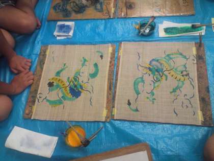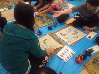 7月8日(火) 修学旅行第1日目 公開日 2014/07/08 更新日 2014/07/08 学校生活 7月8日(火)聖護院御殿荘 体験活動、友禅型染めです。皆さん完成しました。美術科の池原先生の作品はクリアですね。皆さん頑張りました。