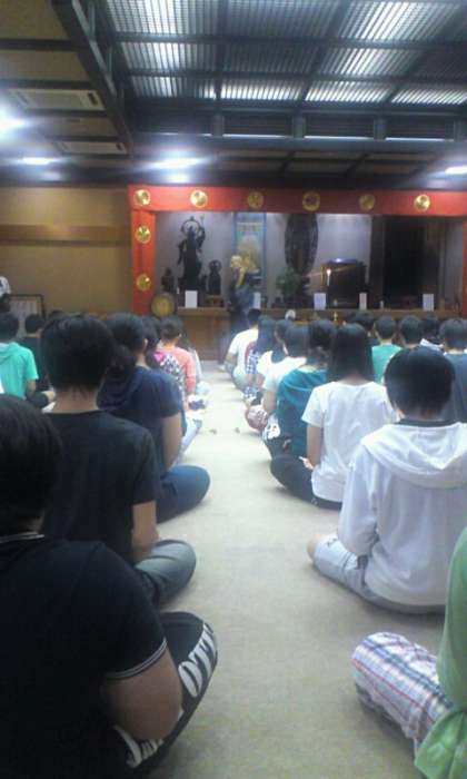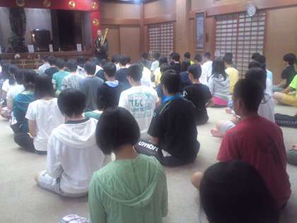 7月9日(水) 修学旅行第2日目 公開日 2014/07/09 更新日 2014/07/09 学校生活 7月8日(火) 聖護院の仮皇居など特別参観と止観体験、警策も伴います。まずは、数息観。数を数え、息を整え、ゆっくり、自分を見つめます。