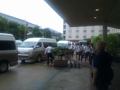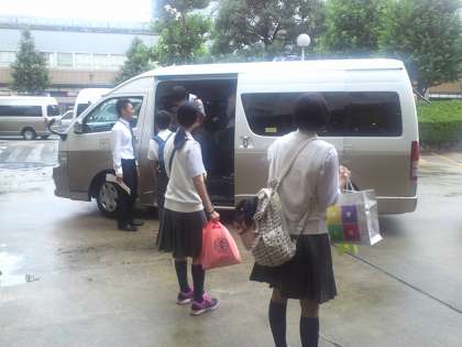 7月10日(木) 修学旅行第3日目 公開日 2014/07/10 更新日 2014/07/10 学校生活 7月10日(木) タクシー班行動、生徒全員、健康安全に、新都ホテルに戻って来ました。楽しそうに、運転手さんに手を振り、お礼を言っています。