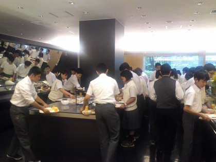 7月10日(木) 京都新都ホテルのラフィンで、ランチバイキングです。生徒の皆さん、よく食べました。唐揚げとたこ焼15個ずつ食べた強者(つわもの)も…。