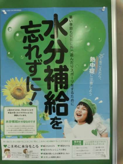 水分補給をこまめに!部活動だけでなく、外出時も水分をよくとってください。自分の健康は自分で守る、自主自立の気持ちが大切ですね。