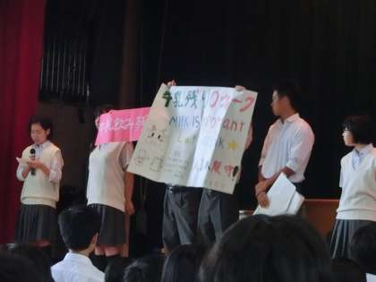 生徒会の給食委員会は、「牛乳残しゼロ週間キャンペーン」を実施とのこと。無理なく、自己判断でチャレンジしてみましょう!
