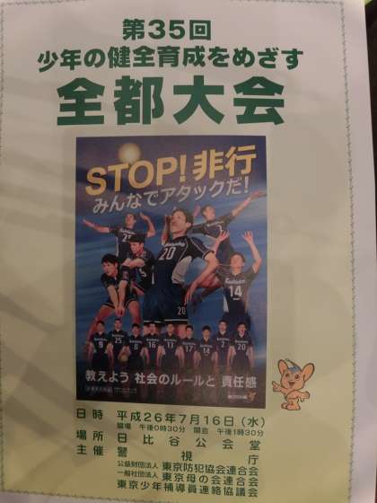 7月16日(水)第35回少年の健全育成を目指す全都大会(日比谷公会堂)に1学年参加!