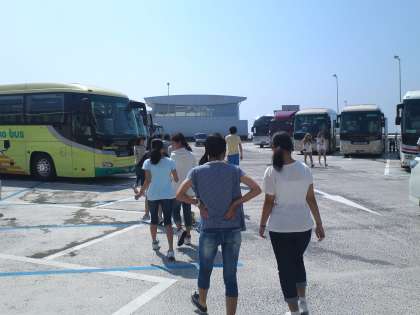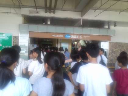 東京湾アクアライン、海ほたるパーキングエリアでトイレ休憩。ちなみに、このアクアラインは1997年開通で、中学校1年生はそのあと3年後の生まれですね。また今、大型バス通過料金は1万円でした。現在、2,500円。ゆっくり海風にあたるという時間はなく、一路、岩井海岸へ向かいます。